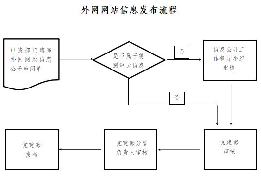 事前審核一般由信息提供部門完成,部門主要負(fù)責(zé)人為第一責(zé)任人。涉及公司外網(wǎng)網(wǎng)站主動(dòng)公開的信息,由相關(guān)專業(yè)部門填寫《外網(wǎng)網(wǎng)站信息公開審閱單》(附件2),經(jīng)黨建部審核后,相關(guān)專業(yè)部門校核發(fā)布。特別重大的信息,公開前提交公司信息公開領(lǐng)導(dǎo)小組審核研究。